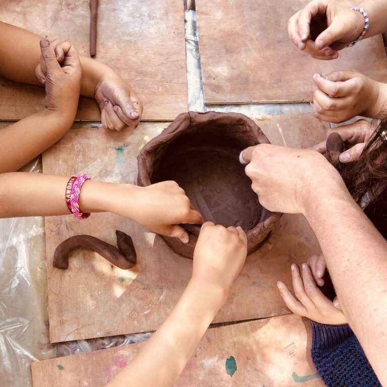 En tant qu’artisane céramiste, j’ai les mains dans l’argile au quotidien. J’ai à cœur de partager ce lien à la terre en allant à la rencontre de publics d’âges et de capacités variés.