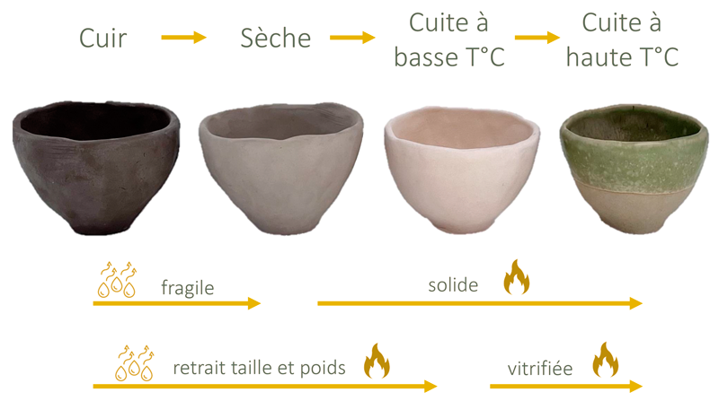 ∙ La vitrification : cuite à haute température, l’argile se vitrifie et n’est plus poreuse